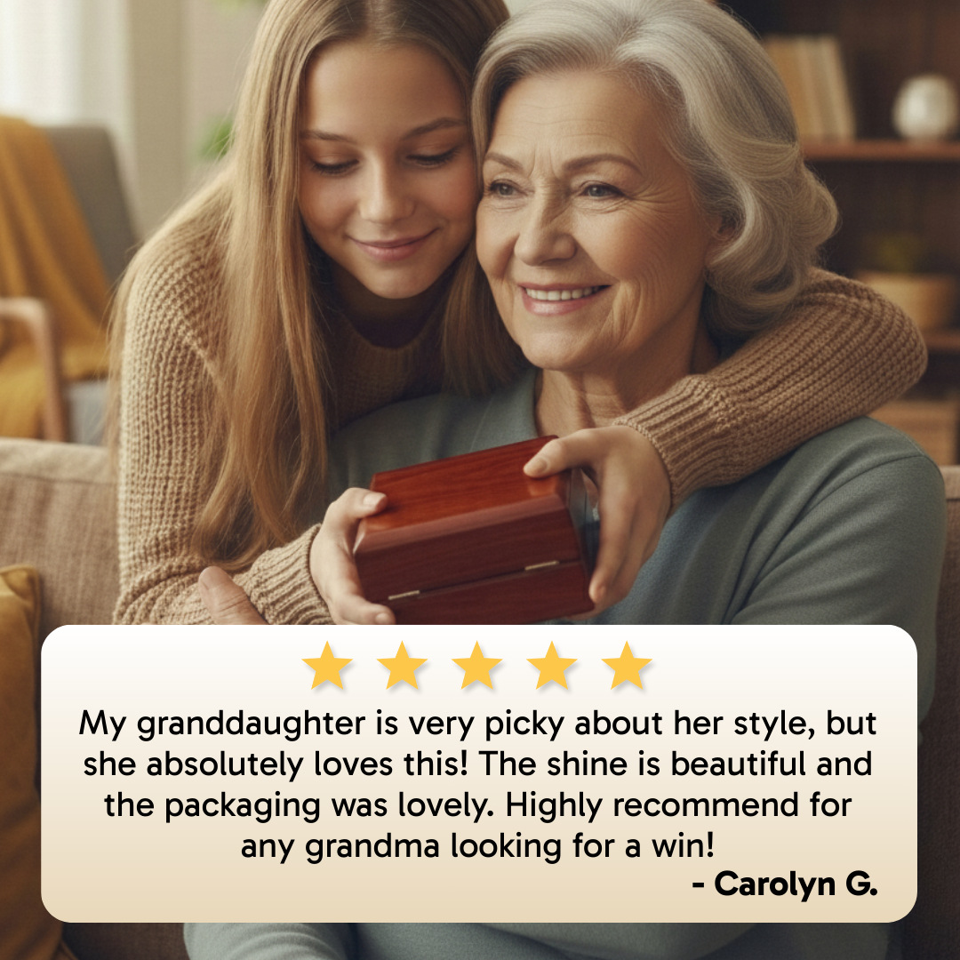 ā Ready-to-Gift Presentation: Presented in a luxury mahogany-style box with a built-in LED spotlight, designed to illuminate the necklace and the heartfelt message card the moment she opens it.