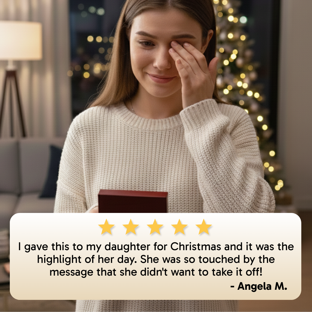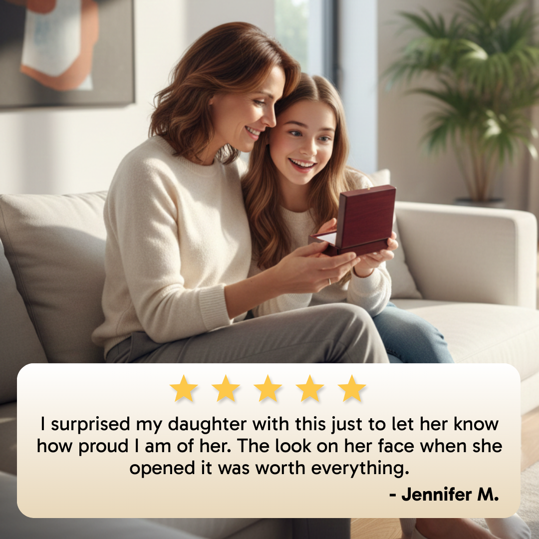 ā Ready-to-Gift Presentation: Presented in a luxury mahogany-style box with a built-in LED spotlight, designed to illuminate the necklace and the heartfelt message card the moment she opens it.